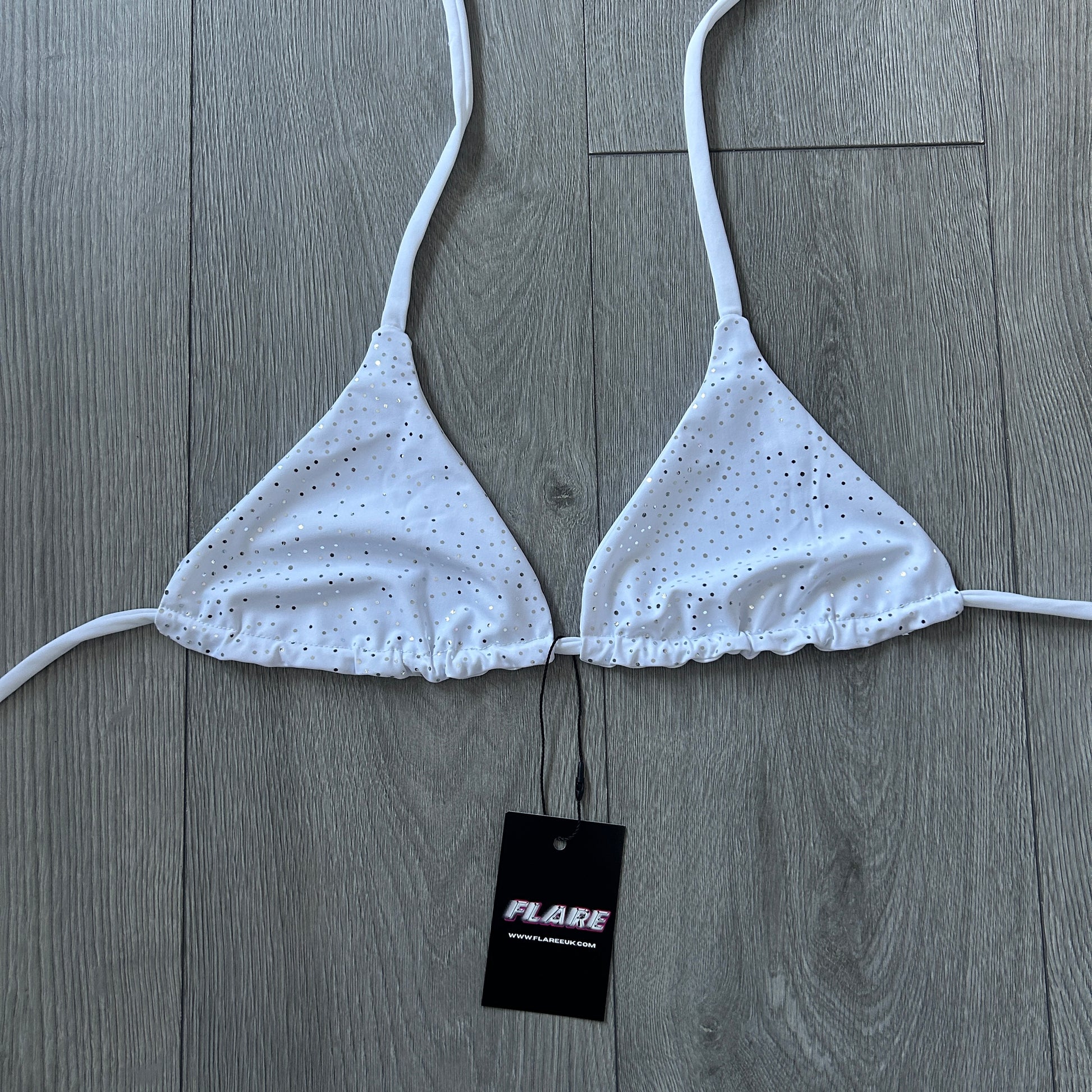 White Sparkle Triangle Bikini Top - Size 8